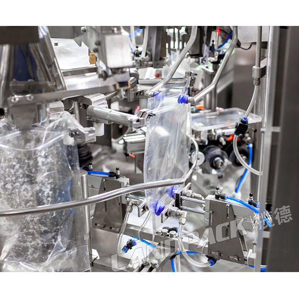 工作流程:上袋→打印生產日期→開袋→充填1→充填2→熱封→整形及輸出
