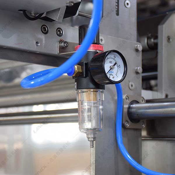 智能完成多列產(chǎn)品包裝過(guò)程,包括自動(dòng)供膜、分切、成型、計(jì)量、充填、封口、切斷、日期打印等工序。先進(jìn)可編程PLC控制系統(tǒng),人性化觸摸屏控制界面使操作及簡(jiǎn)單快捷的參數(shù)設(shè)置調(diào)整包裝參數(shù)。直觀(guān)顯示生產(chǎn)信息,并具有故障自報(bào)警、自停機(jī)、自診斷的功能,使用安全簡(jiǎn)單,維護(hù)方便。進(jìn)口高靈敏度電眼可自動(dòng)追蹤定位印刷光標(biāo),包裝有色標(biāo)的包裝材料時(shí),可獲得完整的商標(biāo)圖案。采用氣動(dòng)活塞泵計(jì)量方式,調(diào)節(jié)方便,包裝精度高易于清洗。先進(jìn)伺服控制的橫封式上下拉膜系統(tǒng),確保拉袋更精準(zhǔn)。自動(dòng)滾刀分膜裝置不易磨損,分膜精確。高精度溫度控制系統(tǒng),封口更結(jié)實(shí)美觀(guān)。歐美外觀(guān)設(shè)計(jì),開(kāi)放式電箱,清潔和維護(hù)更加方便,全方位安全門(mén)防護(hù),使用更安全。