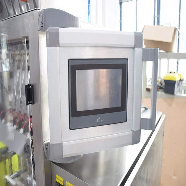 智能完成多列產品包裝過程,包括自動供膜分切,成型,計量,充填,封口,切斷日趨打印等工作。先進可編程PLC控制程序,人性化觸摸屏控制界面及簡單快捷的參數(shù)設置即調整包裝參數(shù),并具有故障自報警,自停機,自診斷的功能使用安全簡單,維護方便。進口高靈敏度電眼可自動追蹤定位印刷光標,包裝有色標的包裝材料時,可獲得完整的商標圖案。采用氣動活塞泵計量方式,調節(jié)方便,包裝精度高易于清洗。先進伺服控制的橫封上下拉模系統(tǒng),確保校袋更精準自動滾刀粉末裝置不易磨損,粉末精確。高精度溫度控制系統(tǒng),封口更結實美觀。歐美外觀設計,開放式電箱,清洗和維護更加方便,全方位安全門防護,使用更安全。