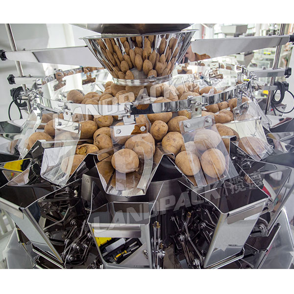 新鮮土豆包裝機(jī)是一款針對(duì)新鮮整顆土豆進(jìn)行裝袋包裝的機(jī)械設(shè)備,由Z型自動(dòng)上料機(jī)、14頭電子組合稱、工作平臺(tái)、720立式機(jī)組合起來的包裝系統(tǒng)。該機(jī)的工作流程是:操作人員把需要包裝的土豆倒入震動(dòng)儲(chǔ)料斗當(dāng)中,然后儲(chǔ)料斗把土豆震動(dòng)輸送到Z型上料機(jī),通過傳送帶輸送到14頭電子組合稱當(dāng)中進(jìn)行計(jì)量稱重,下料到包裝機(jī)里面進(jìn)行裝袋封口,然后成品輸出一系列步驟完成包裝過程。