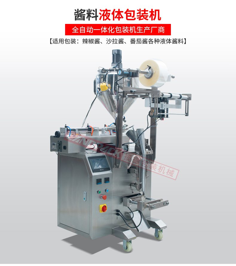 調(diào)料油包裝機(jī)主要適用于食品、食品調(diào)料等行業(yè)的自動(dòng)包裝,主要產(chǎn)品有辣椒油辣椒籽自動(dòng)包裝、冷面調(diào)料、蛋蛋面、麻辣拌、涼皮調(diào)料自動(dòng)包裝、涼粉調(diào)料自動(dòng)包裝,針對(duì)辣椒油、辣椒油快速分離有著更好的解決辦法,從而深受市場(chǎng)的喜愛。