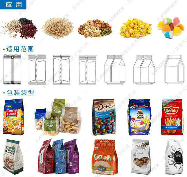 包裝范圍:顆粒、糖果、餅干、粉末、袋中袋包裝