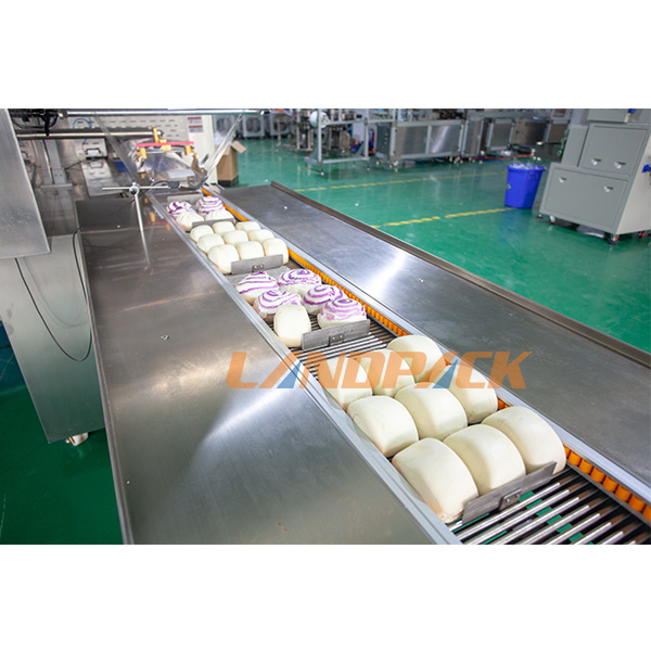 饅頭包子包裝機是一款針對包子、饅頭、糕點等食品進行裝袋的機械設備,該機采用伺服電機控制,可以自動切斷,速度可以自由調(diào)節(jié)。該機的工作流程是:操作人員手動把需要包裝的干粉絲放到包裝機的傳送帶上面,傳送帶連同卷膜和干粉絲一起輸送到包裝機當中,完成整個包裝過程。粉絲條自動包裝機器包裝封口處平整整潔,美觀精致,干凈衛(wèi)生,不僅能提高產(chǎn)品的檔次,還可以延長保鮮效果。